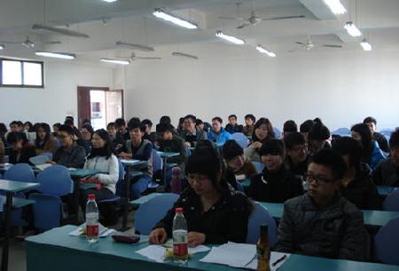 我校年轻校友、徽商银行蚌埠东淮支行李成才行长助理成为本次系列活动首位受邀的“蚌埠市2012年度优秀银行客户经理”。李成才经理热情、坦诚、积极、务实的讲座使与会同学深受教育,也激发起了同学们“技能成才”的热情与信心。场面气氛热烈、交流踊跃深入。李成才经理讲述了技能成才的心路历程,传授了成才经验,并就大学生学习、成长发展等问题展开互动问答。李成才经理坚定的职业信念、精湛的技艺、忘我的拼搏精神和高度的社会责任感,深刻感悟和震撼了在场的同学们。