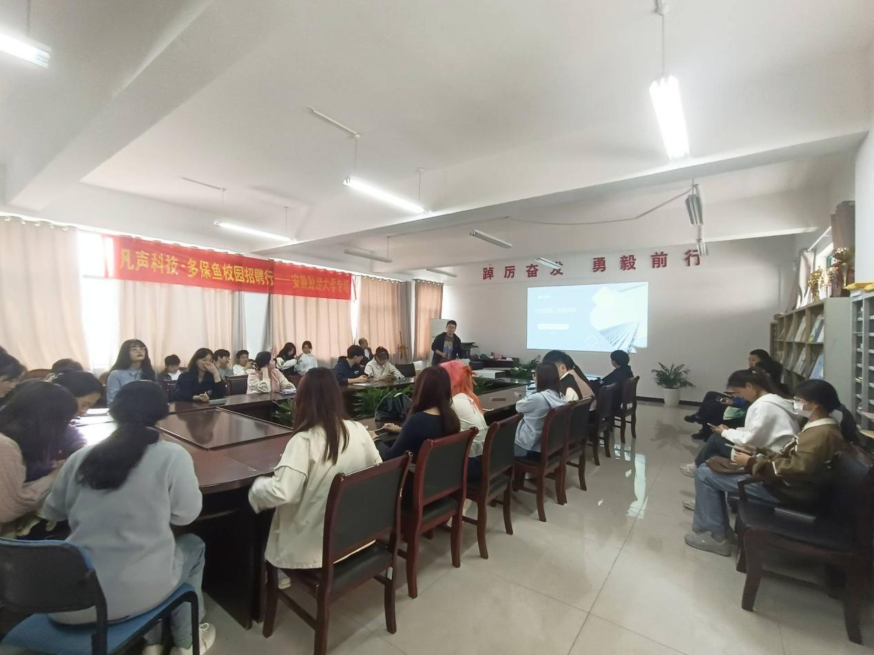 在宣讲会上,杭州凡声科技有限公司负责人介绍了行业前景、公司概况、企业管理模式、能力需求等,同时对于求职者的具体要求和发展通道进行了介绍,与参会毕业生共同探讨了未来职业发展的可能性与挑战。